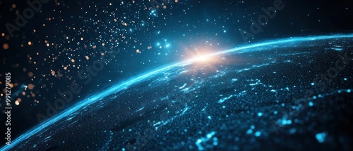 Poster blue abstract view of amazing glowing planet from space background wallpaper ai generated image