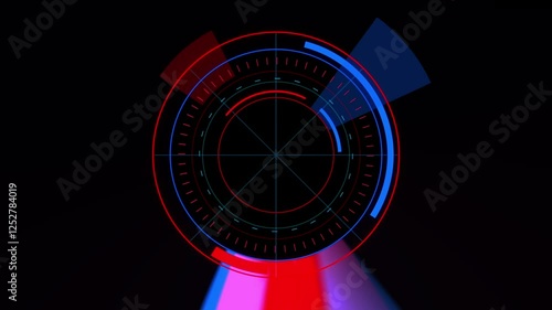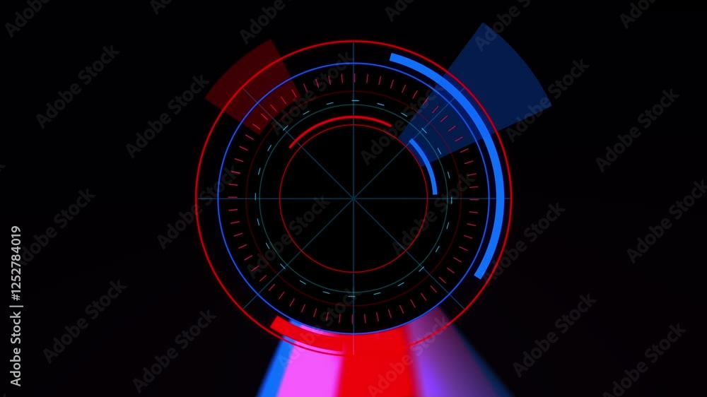The watermark will not be included on Poster.: Blue and red hud display with light rays - loading, analysing data, rotating circles, hud circle inte