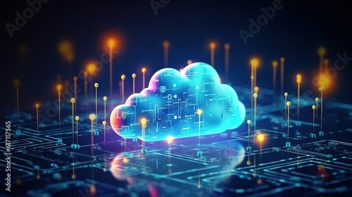 The watermark will not be included on Poster.: Blue circuit board background - cloud network solution digital background - generative ai