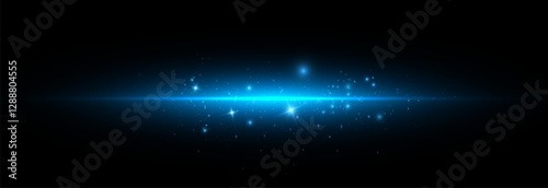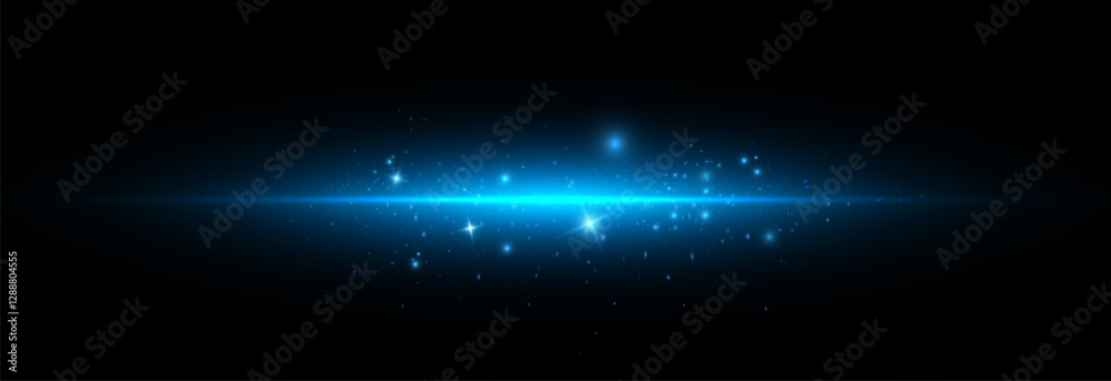 The watermark will not be included on Poster.: Blue glow effect and laser effect with rays and glare, bright abstract horizontal beam of light - vec