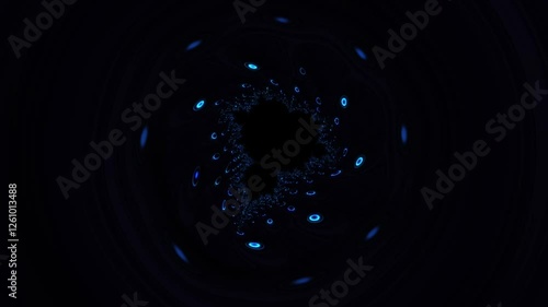 The watermark will not be included on Poster.: Blue glowing fractal circle flowing on black background - abstract shine texture fractal pattern anim