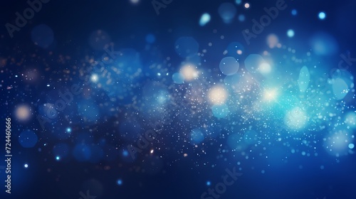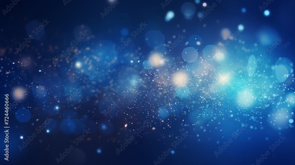 The watermark will not be included on Poster.: Blue glowing particles on dark background with bokeh effect