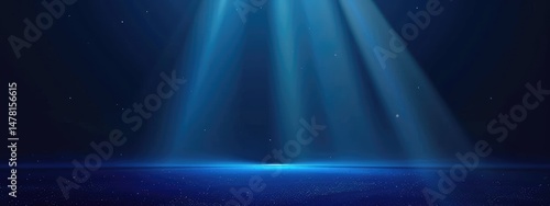 Poster : Blue gradient background with spotlight, glowing light rays and empty space for product presentation