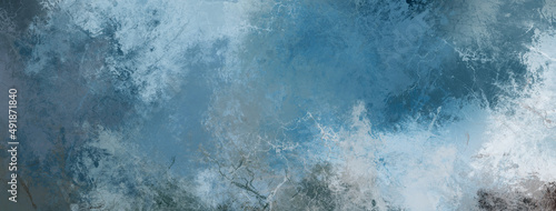 Poster : Blue gray and white abstract art painted grunge texture background with textured pattern in canvas w