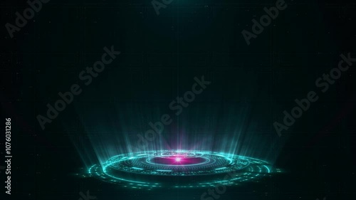 The watermark will not be included on Poster.: Blue holographic advanced hud circle platform - copy space for any message - futuristic digital techno