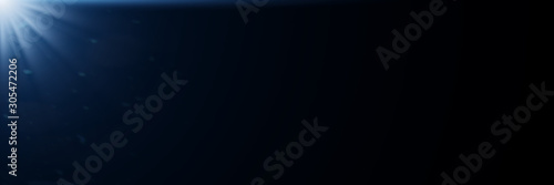 Poster blue lens flare effect overlay texture in front of a black background - banner format