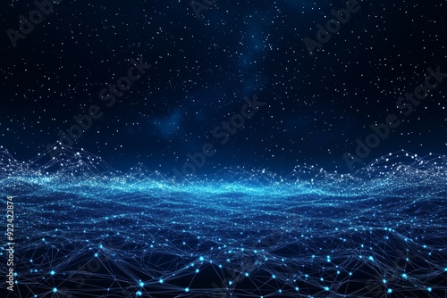 The watermark will not be included on Poster.: Blue mountain background with abstract technology created by generative ai