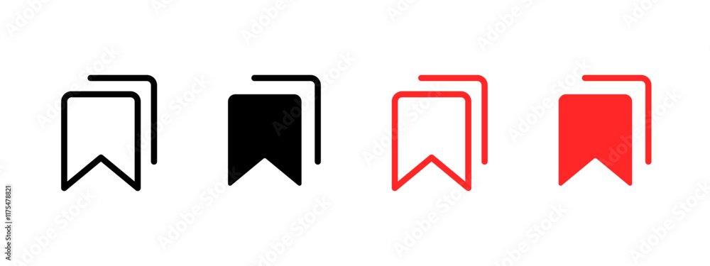 The watermark will not be included on Poster.: Bookmark icon - add to favorite symbol - save button - bookmark web interface element - red flag tag - di