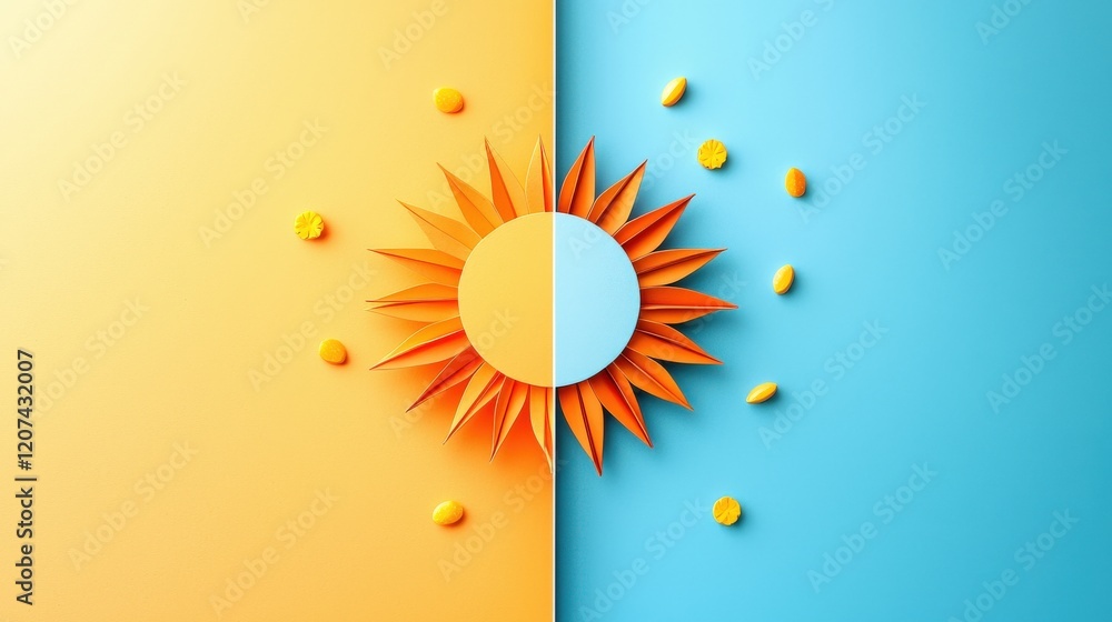 The watermark will not be included on Poster.: Bright and cheerful sun and sky design with paper elements representing day and summer vibes