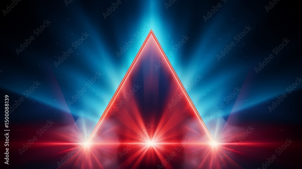 Poster bright red and blue lighted triangle with a red base and blue top. the triangle is lit up with red a - Posters Poster bright red and blue lighted triangle with a red base and blue top. the triangle is lit up with red a - Posters