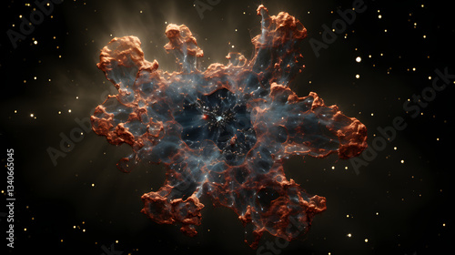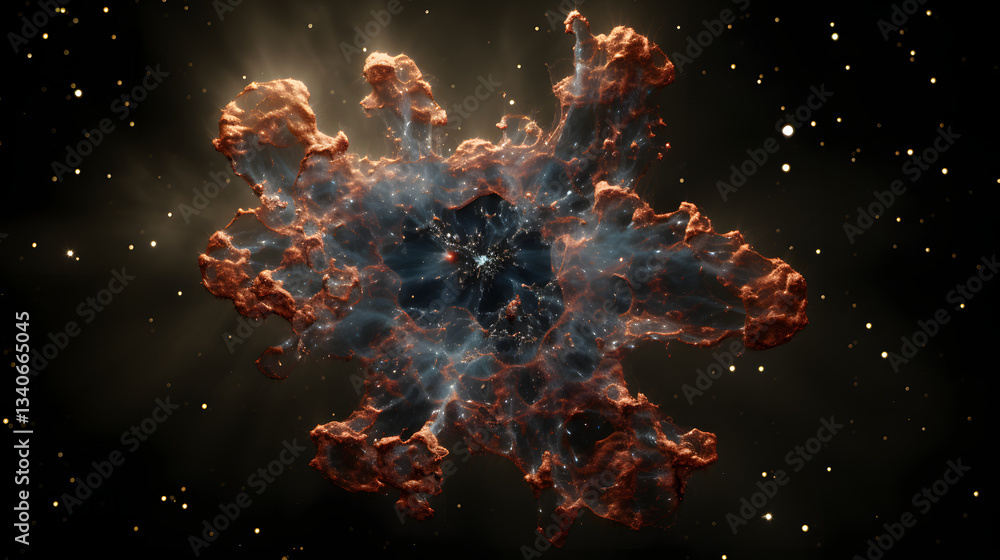 The watermark will not be included on Poster.: Brilliant distant supernova exploding in the dark vastness of space with radiant colors and cosmic e