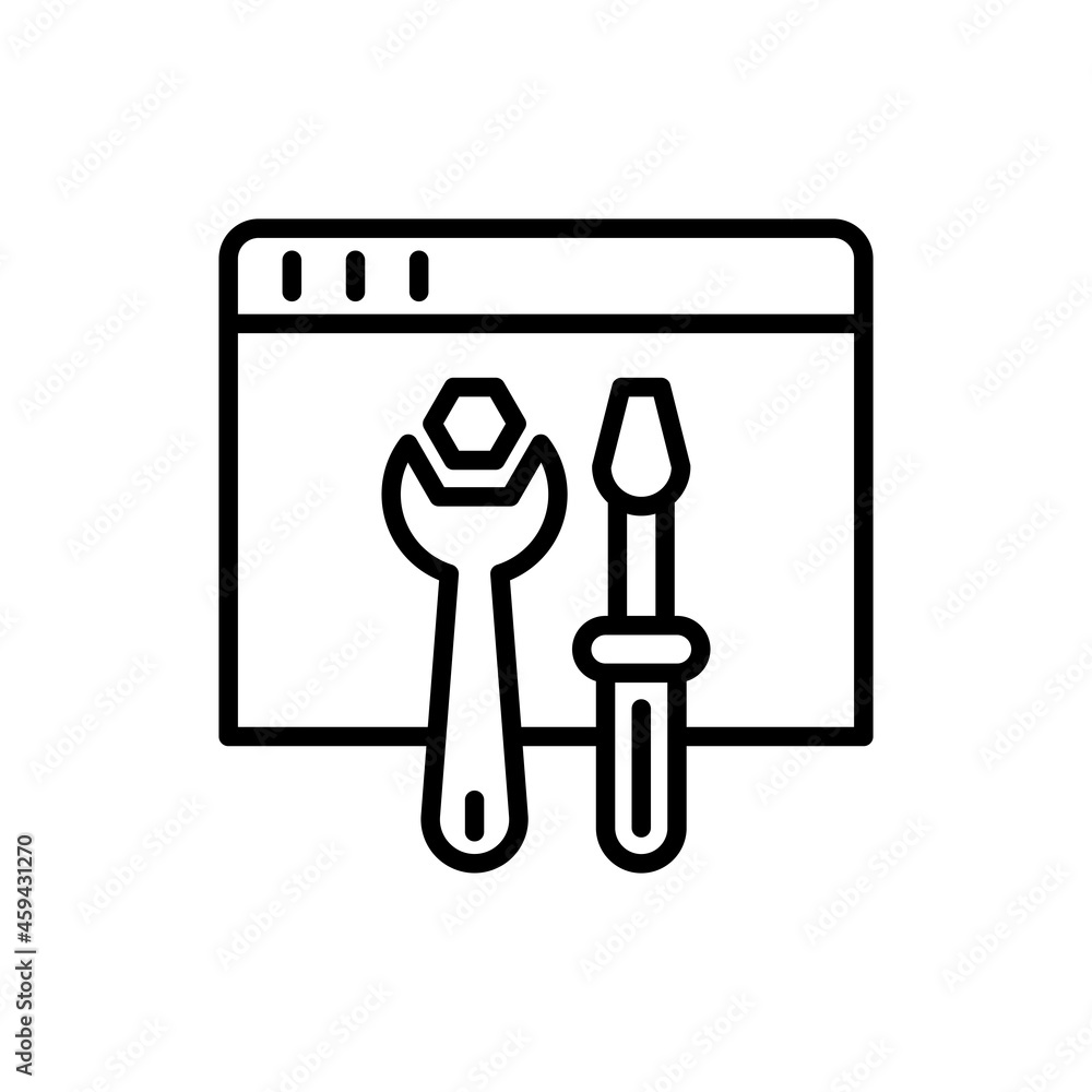Poster : Browser settings thin line icon, wrench and screwdriver on web page - themes for browser - modern vect