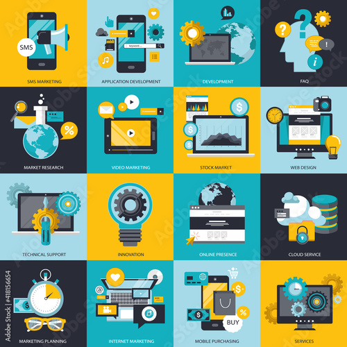 The watermark will not be included on Poster.: Business, technology and management icon set for websites and mobile applications - flat vector illus