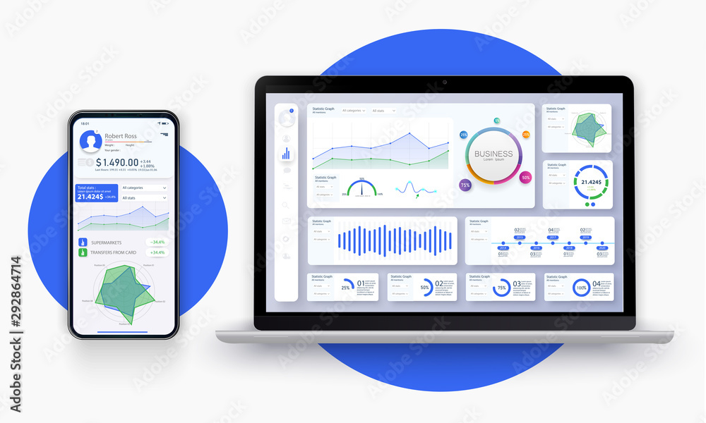 Poster business app ui/ux with graph and analytics. web page banner for presentation. business infographic  - Posters Poster business app ui/ux with graph and analytics. web page banner for presentation. business infographic - Posters