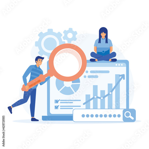 Poster business finance investment concept, people working for data analytics and monitoring on web report