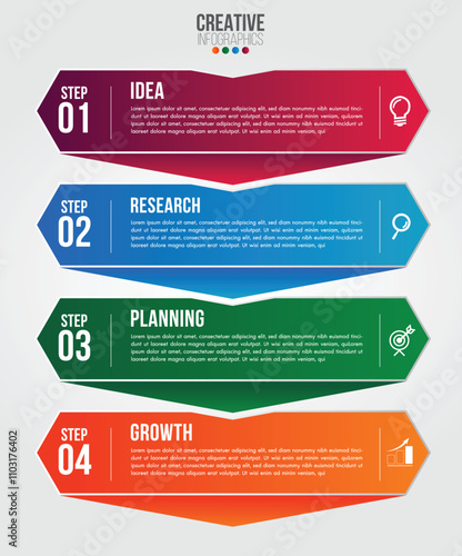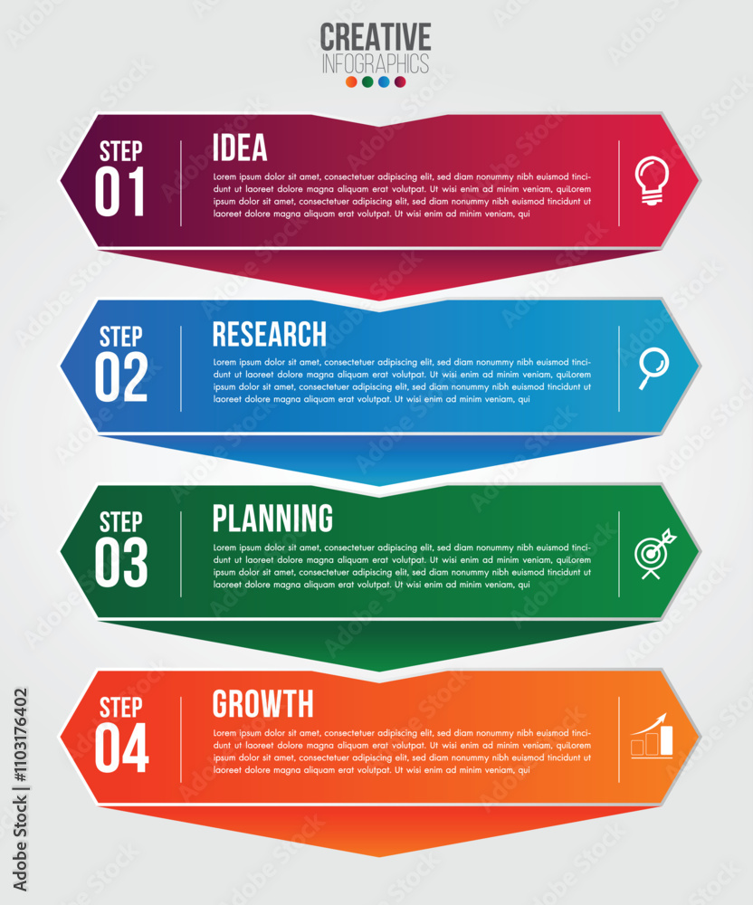 Business infographics 4 steps options design template - data and information visualization - dynamic colPoster