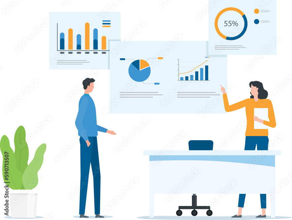 Poster business team meeting working analytics and monitoring financial report graph for planning