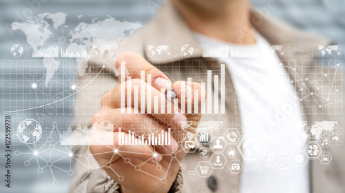 The watermark will not be included on Poster.: Businessman using digital graph interface with a pen