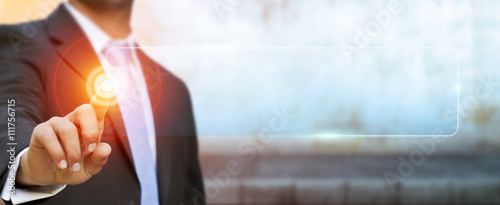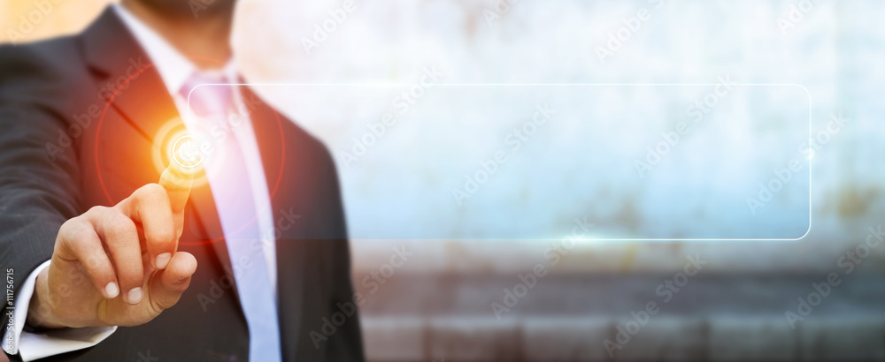 The watermark will not be included on Poster.: Businessman using tactile interface web address bar to surf on i