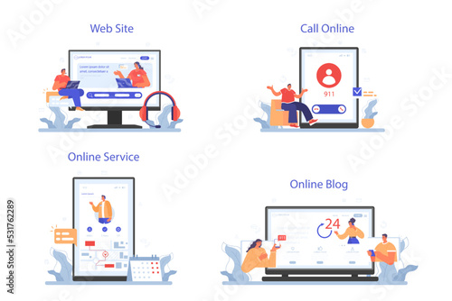Poster : Call center or helpline online service or platform set - support operator