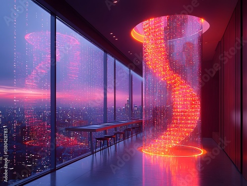The watermark will not be included on Poster.: Captivating futuristic architecture with neon spiral structure