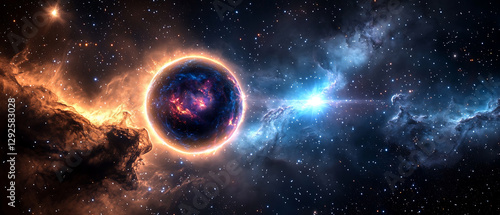 Poster celestial event cosmic nebula formation outer space digital art stellar environment wide view galact