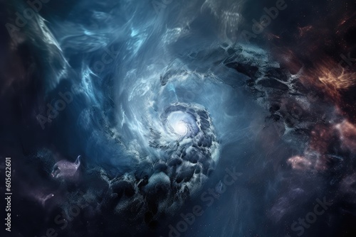 The watermark will not be included on Poster.: Celestial vortex, with swirling clouds of gas and dust in galaxy or nebula, created with generative