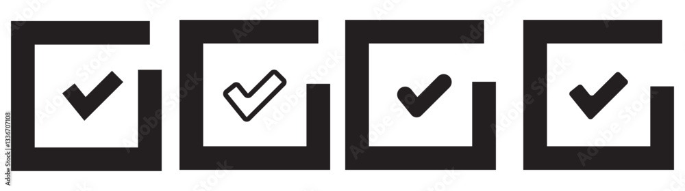 Poster : Check box icon with correct with different line width - approved symbol - accept checkmark icons green