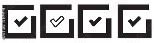 Poster check box icon with correct with different line width. approved symbol. accept checkmark icons green