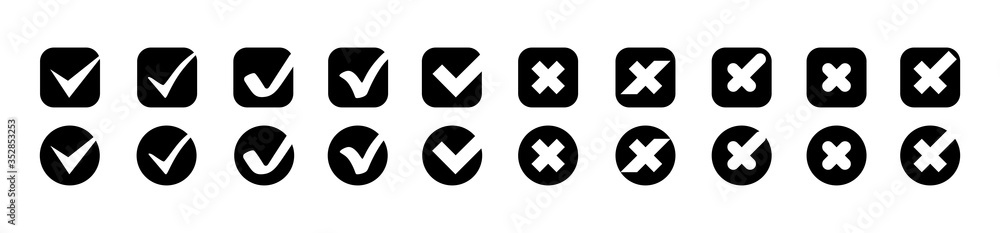 Check marks with crosses vector icons big collection - check marks with crosses different shapes, isoPoster