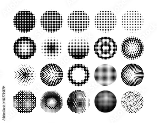 Poster circle halftone. black dot radial and linear gradients with various patterns, distortions, optical i - Posters Poster circle halftone. black dot radial and linear gradients with various patterns, distortions, optical i - Posters