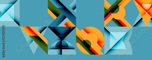The watermark will not be included on Poster.: Circles squares lines abstract background