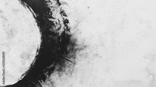 Poster : Circular brushstroke showcases an interplay of black and white, emphasizing depth and texture across
