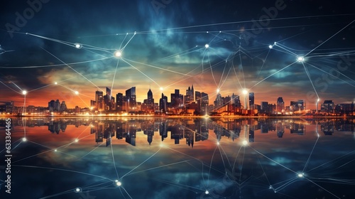 The watermark will not be included on Poster.: City and polygon connection with speed line technology - ai generative -