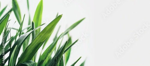 The watermark will not be included on Poster.: Close up of isolated grass leaves on a white background with copy space image