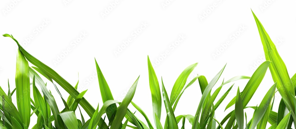 The watermark will not be included on Poster.: Close up of isolated grass leaves on a white background with copy space image