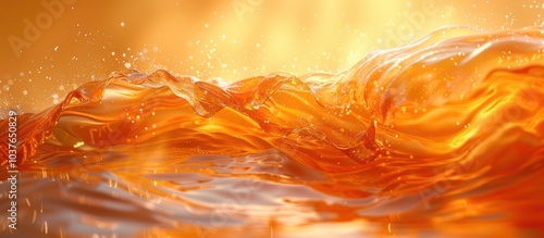 Poster close-up of orange liquid with light reflecting on the surface, sparkling and rippling, creating a w