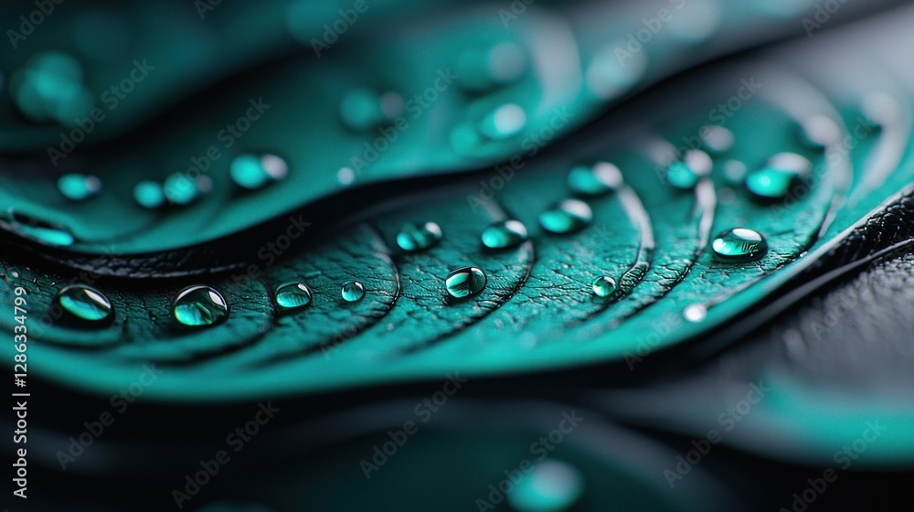 Poster close-up of textured surface with water droplets, showcasing intricate patterns and vibrant colors