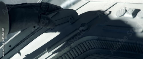 Close up on hand - astronaut performing spacewalk, working on a outer part of a space craft - space ePoster