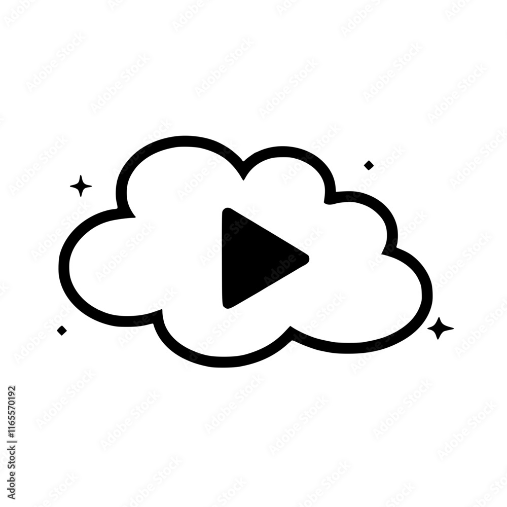 The watermark will not be included on Poster.: Cloud-based video streaming - simple icon design depicting a play button inside a cloud, symbolizing