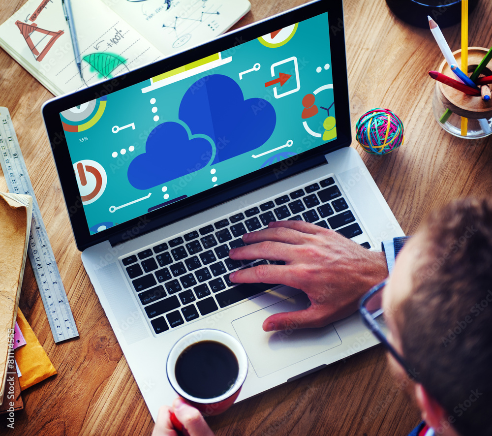 The watermark will not be included on Poster.: Cloud computing network online internet storage concept