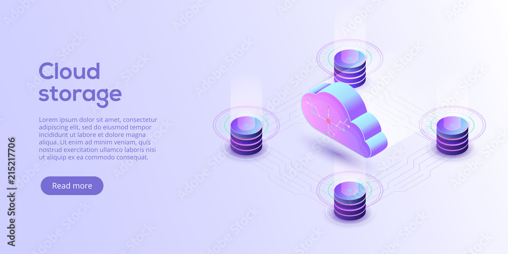 The watermark will not be included on Poster.: Cloud storage download isometric vector illustration - digital service or app with data transfering -