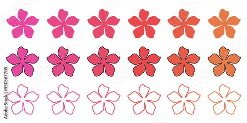 Poster collection of simple vector flowers in various vibrant colors - set of flat and outline flowers isol