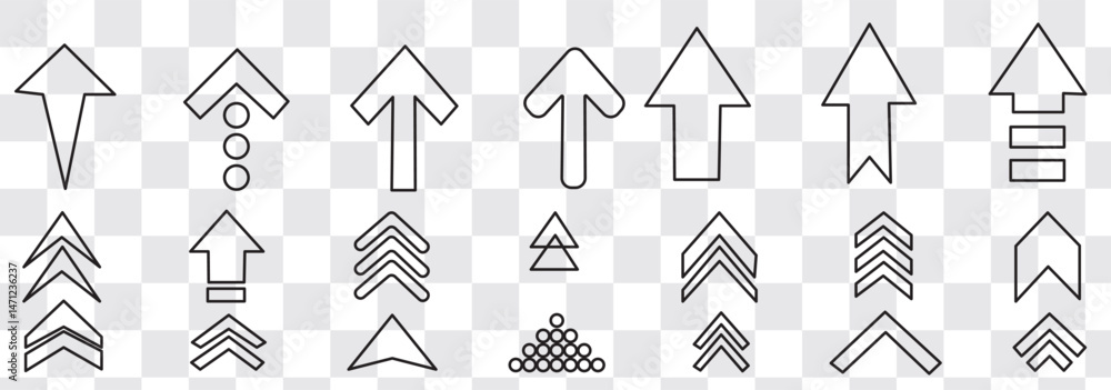 The watermark will not be included on Poster.: Collection of swipe up icons with gray arrows in various styles on a white background -