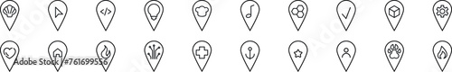 The watermark will not be included on Poster.: Collection of thin line icons of map pin - editable stroke - simple linear illustration for web sites,