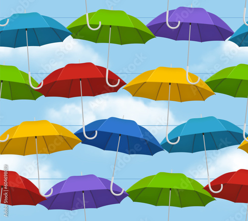 Poster : Colored umbrella pattern - opening rain tools umbrellas decent vector seamless background