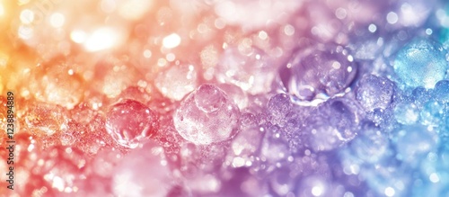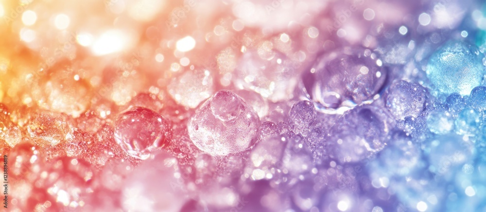 The watermark will not be included on Poster.: Colorful abstract background with water droplets on glass surface creating rainbow effect and bokeh