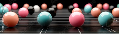 The watermark will not be included on Poster.: Colorful balls on parallel lines with a dark background, can be used for abstract art