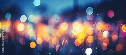 Poster colorful bokeh lights shimmering through rain on a window at night creating a dreamy atmospheric bac