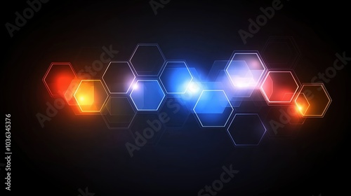 Poster colorful hexagon pattern with a blue and red center. the hexagons are lit up and appear to be glowin